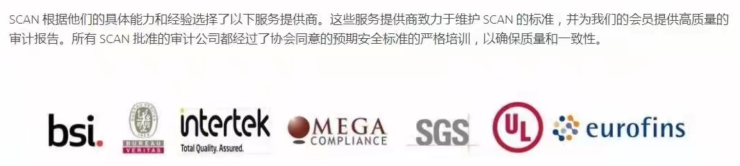 SCAN驗廠,即“供應(yīng)商合規(guī)審核”,英文全稱是Supplier Compliance Audit Network,是由BSI英標(biāo)公司根據(jù)不同安全系數(shù)的國家區(qū)域,結(jié)合美國C-TPAT,而又完全異于C-TPAT、GSV、SCS審核標(biāo)準(zhǔn)而撰寫的一個新的反恐審計標(biāo)準(zhǔn)。同時,SCAN也是由美國大大小小的進口商成立的一個合規(guī)審核協(xié)會,其搭建了一個審計共享平臺,通過建立完善合理的反恐審核打分系統(tǒng),提高了審核的一致性,目標(biāo)是減少供應(yīng)鏈安全審核的成本和頻率,讓進口商可以共享審核報告信息。SCAN組織成員已經(jīng)有Walmart、家得寶、JCPENNEY、TARGET等世界巨頭品牌。目前SCAN驗廠的審核機構(gòu)主要有:SGS、BV、ITS、BSI、UL、OMEGA、Eurofins。SCAN驗廠審核全部問題點共:83個,根據(jù)性質(zhì)分成Critical、Must、Should三大類,其中Critical是審核關(guān)鍵點,出點差錯,重則影響審核通過,輕則要求2個月內(nèi)提交CAP和改進證據(jù),審核結(jié)果為打分制,要求達到76分才算通過,報告一年有效。