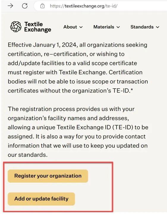 注意:任何企業(yè),只要出現(xiàn)在Textile Exchange的官網(wǎng)列名中(https://textileexchange.org/find-certified-company/),均可寬限至2024年3月1日前完成注冊(cè)。